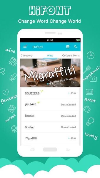 HiFont oferuje setki różnych czcionek, w tym kolorowe czcionki. Wśród nich są szybkie rysunki "Migraffiti", godność "Bronte", owocowa zabawa "Water_Melon" i wiele więcej! Po pobraniu tej aplikacji na telefon nie zabraknie zabawy w krój czcionki. Przygotuj się na niekończącą się rozrywkę, wymyślając nowe motywy i kombinacje.